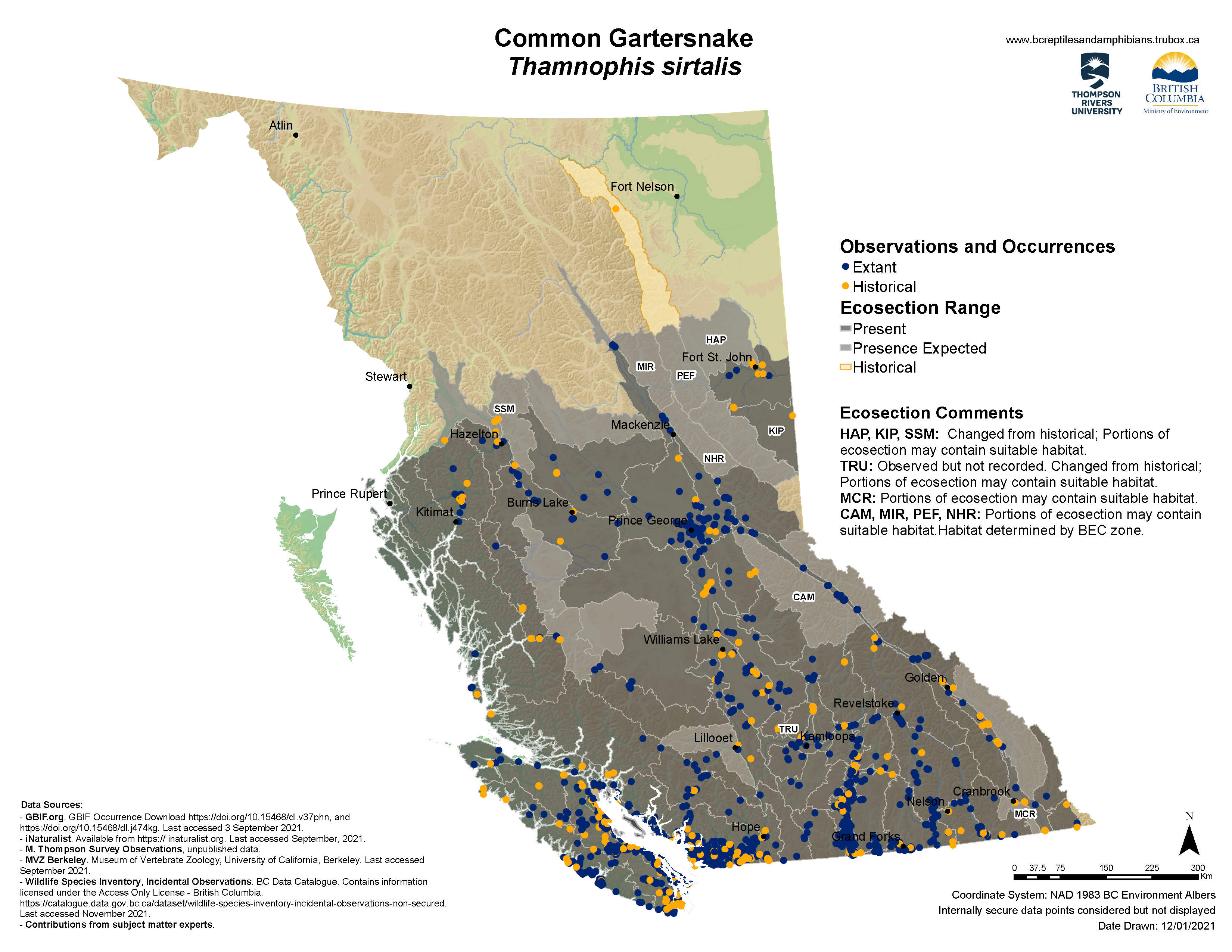 B.C. Conservation Data Centre. 2011. Conservation Status Report: Thamnophis sirtalis. B.C. Minist. of Environment. Available: https://a100.gov.bc.ca/pub/eswp/ (accessed Jun 14, 2021).