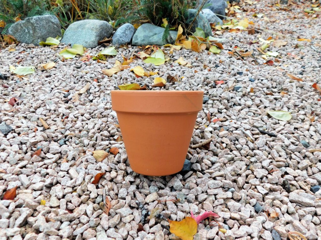 The only necessary material is a pot that you can flip upside down. If the pot has a large crack on the rim, that makes a great doorway! Otherwise, you will need to prop your unbroken pot up with a rock. Beyond that, you can choose any decorations you like. We used paint, glue, and some items to use as decorations like wooden shapes, shells, and acorns. Just make sure whatever you use to decorate the pots with isn’t toxic and won’t wash off in the rain