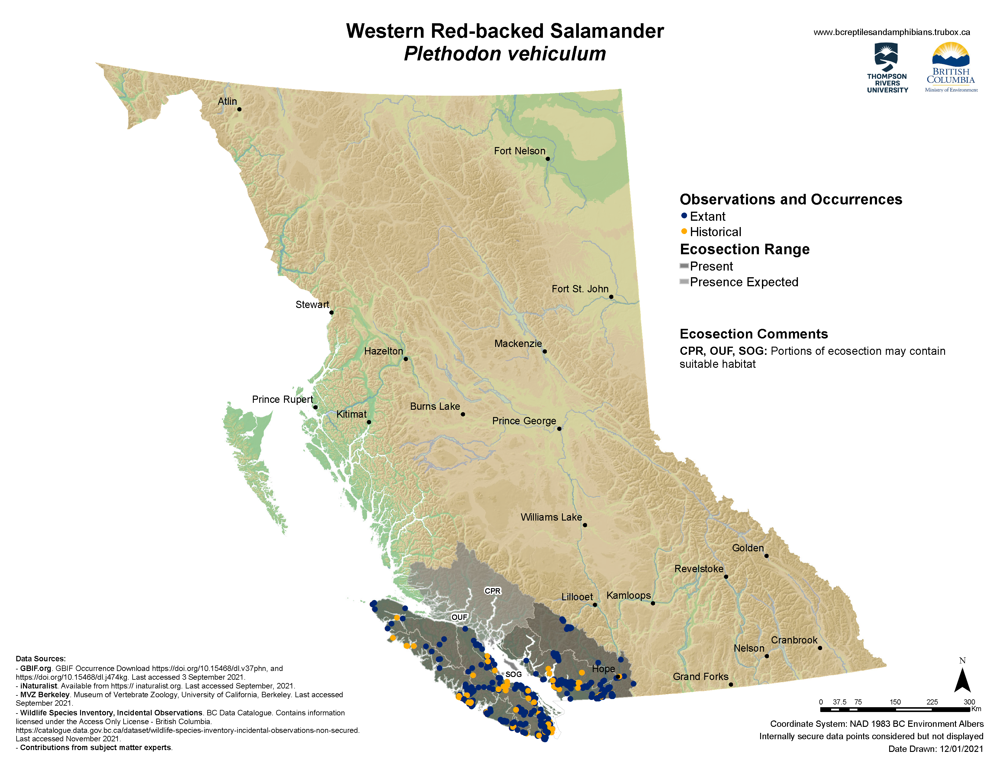 B.C. Conservation Data Centre. 1995. Species Summary: Plethodon vehiculum. B.C. Minist. of Environment. Available: https://a100.gov.bc.ca/pub/eswp/ (accessed Jun 14, 2021).